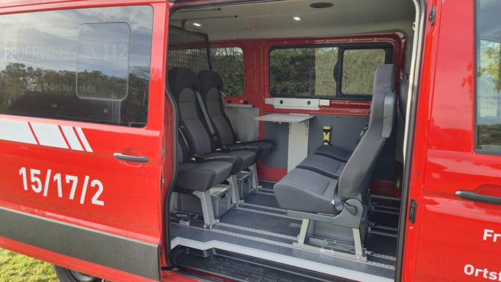 Das Mannschaftstransportfahrzeug (MTF) 15/17/2 dient vornehmlich zum Transport der Einsatzkräfte zur Einsatzstelle. Aufgrund der Ausstattung, welche im Kofferraum verlastetet werden kann, ist es möglich auch kleinere Einsätze eigenständig abzuarbeiten. Es bietet Sitzplätze für 8 Personen und verfügt über einen durch ein Gitter abgetrennten Heckladeraum.