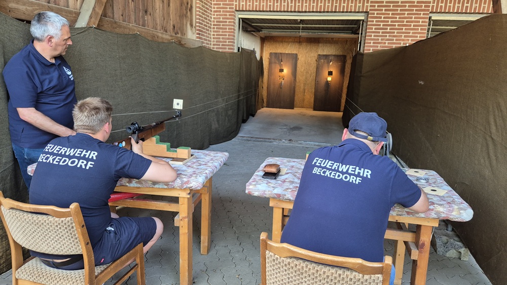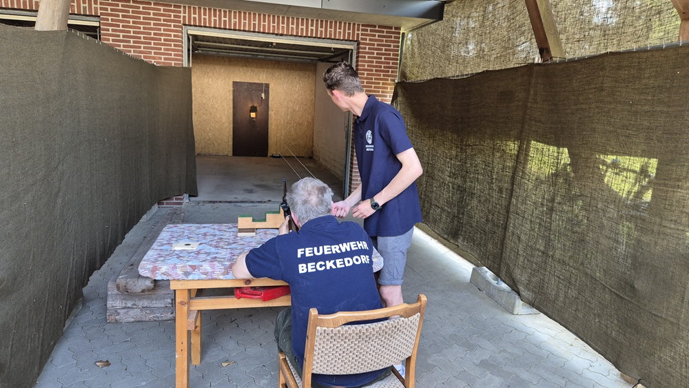 Zu Beginn unseres Feuerwehrfestes findet am Freitagabend und Samstagnachmittag unser traditionelles Preis- und Königsschießen statt. Alle Mitglieder der unserer Feuerwehr können hier ihre Treffsicherheit unter Beweis stellen. Seit einigen Jahren schießen wir am Freitag unseren „Kaiser“ aus. Auf die Kaiserscheibe dürfen nur die Kameraden und Kameradinnen schießen, die es geschafft haben, Schützenkönig zu werden. Mit einem super Schuss konnte Frank Sander seinen Kaisertitel verteidigen und ist auch 2025 unser Kaiser.